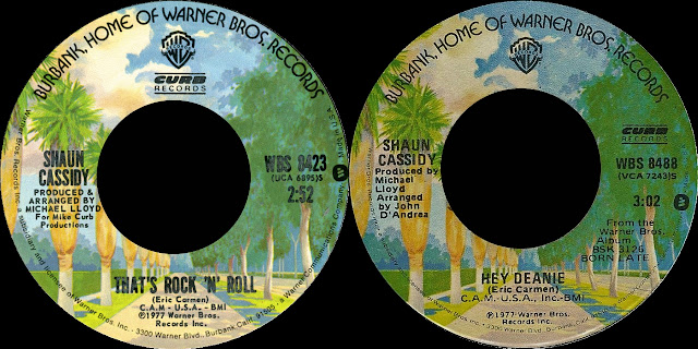 As mentioned earlier in our Thirty-threes discussion, Shaun Cassidy had two singles on the chart, one from each of the two albums he had in the Top 10: "That's Rock 'N' Roll", from his self-titled debut, inched down one spot to number 37 and "Hey Deanie", from his sophomore effort Born Late, also dropped one spot to number 7.